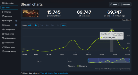 值得一提的是,本作昨晚在Steam平台迎来一波在线人数高潮,